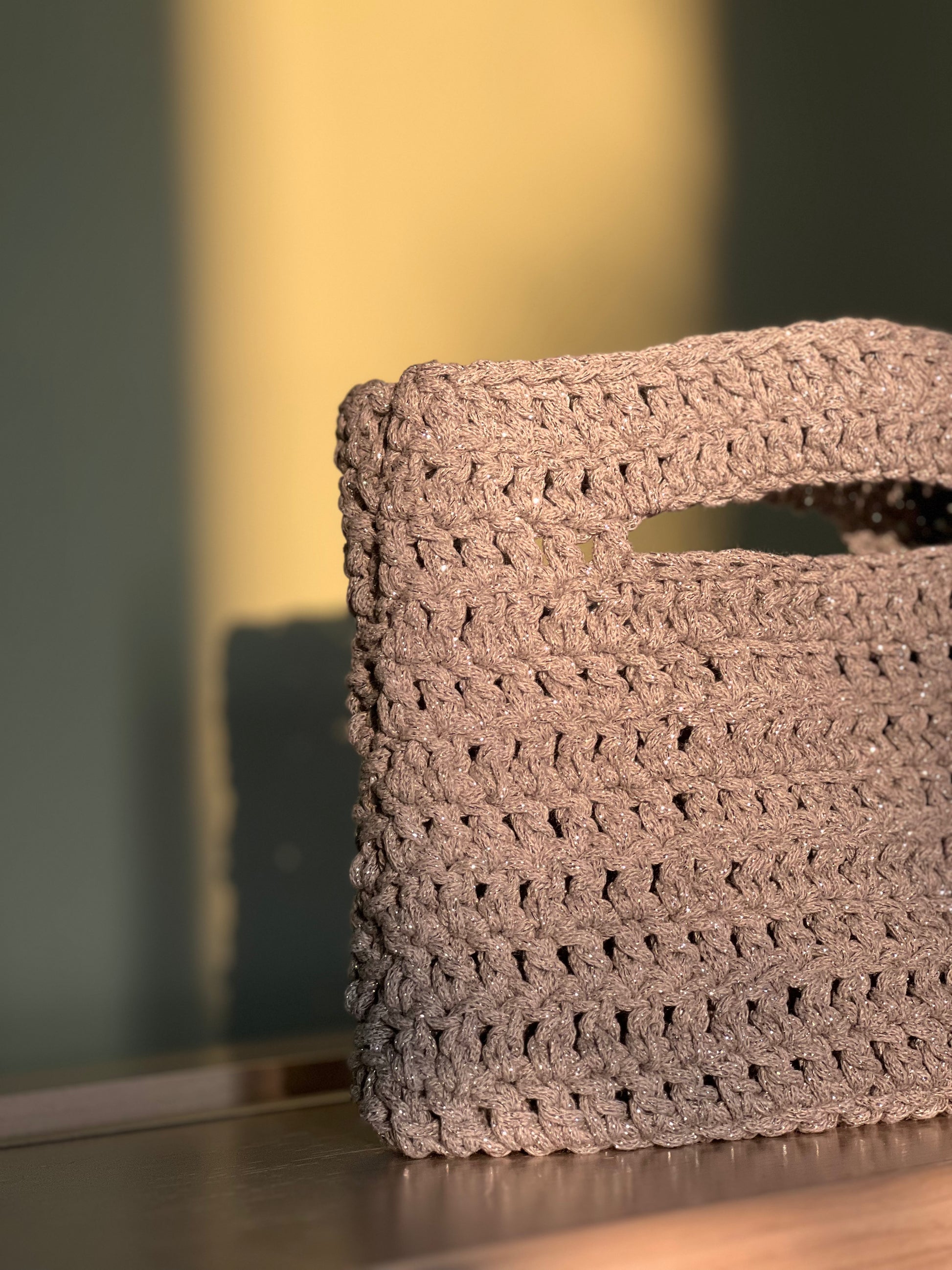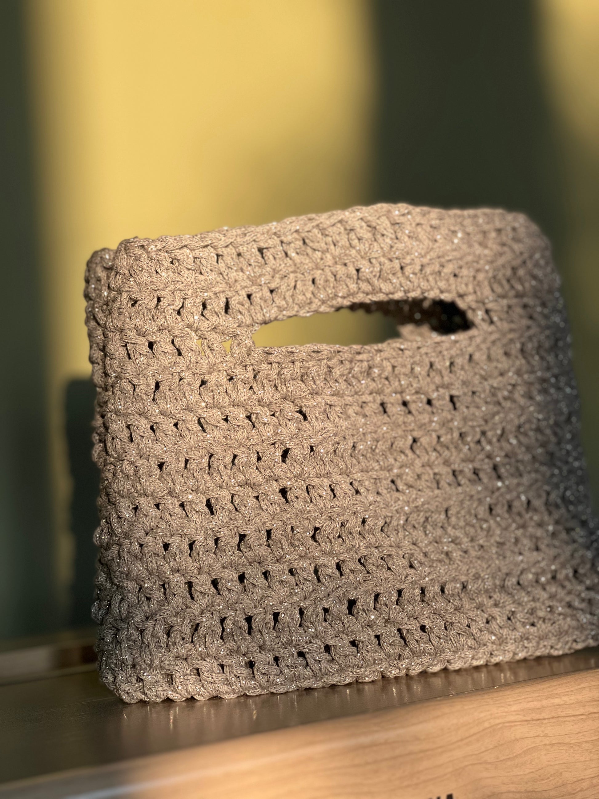 Borsa a mano in cordoncino lurex. Sfoderata.